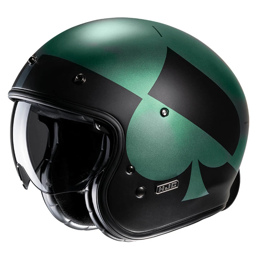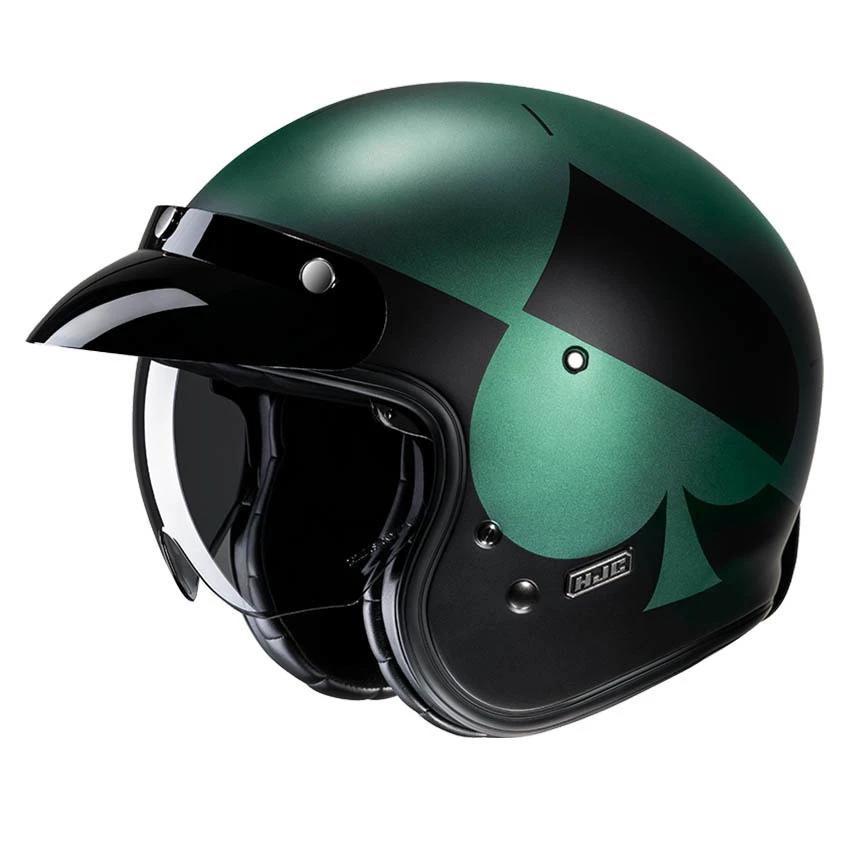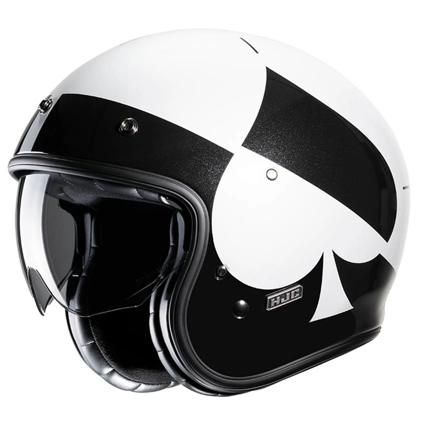 The HJC v31 Kuz is a retro-style open-face helmet composed of an advanced fiberglass composite shell to provide a lightweight helmet. This ¾ helmet features an integrated 3 position sun shield with anti-scratch coating that deploys easily to slide up or down. To enhance the vintage feeling the V30 is fitted with leather and suede interior and goggle strap holder.