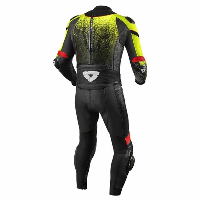 The Quantum one-piece overall takes design and appearance to an unprecedented level. This suit is of course designed with regard to the dimensions of graphics and appearance, but this overall also demonstrates how optimally a suit should sit while driving. Thanks to the strategic placement of stretch panels, the Quantum provides complete freedom of movement, so that the rider can effortlessly tackle every turn and can hang up next to the engine. In addition to the use of dual-comp knee sliders, the Quantum is also equipped with dual-comp elbow sliders, giving you extra reference points to explore the limits of gravity at maximum angles on the circuit. The refined interplay of particularly hard-wearing, debossed and perforated leather with MotoGP-spec protection makes the Quantum the essential overall to sharpen your racing skills and to stay optimally in shape and protected on the street. With that unmistakable look that is directly derived from that of the professional racing world.