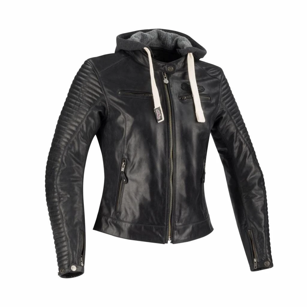 Halfway between vintage and motorcycle clothing, the Lady Dorian improves her timeless looks with a removable sweatshirt-like hoodie, resulting in a real streetwear appearance. The jacket for motormens that opt ​​for something unusual and quirky. Rock-solid Buffalo leather type and of course provided with protection.